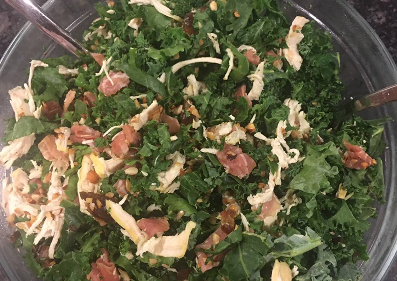 - Combina la ensalada de kale con el proscuitto, pollo. Deja enfriar por 30 min antes de consumirse.