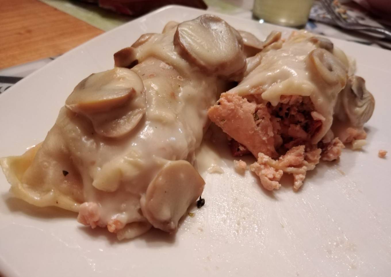 - Viertes encima de los Canelones la salsa, puedes poner un poco de queso rallado y al horno a gratinar. Servir calentitos!