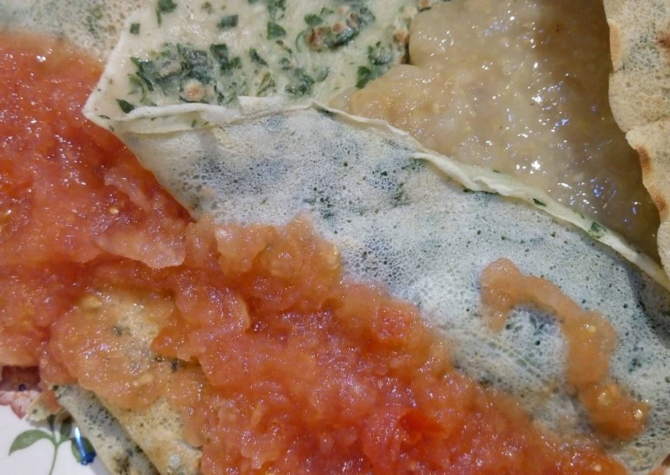 Instructions to make to make Crepes de espinacas rellenos con crema de choclo