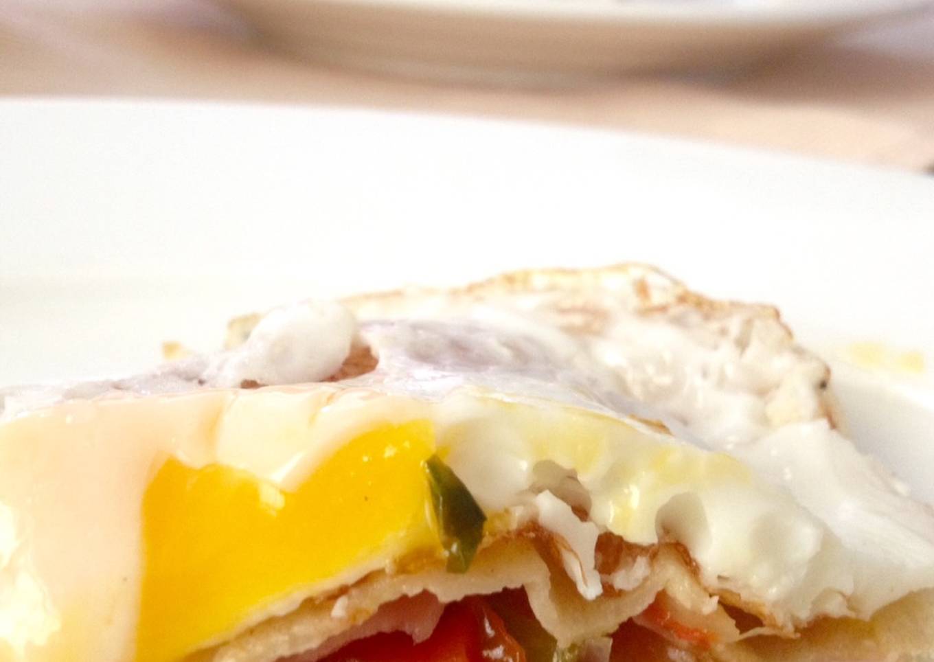 - Colocar el huevo frito sobre la Crêpe cerrada y disfrutar.
